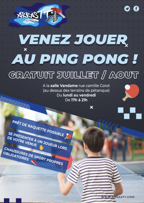 🏓 Info Arras TT 🏓 Venez essayer le ping gratuitement en juillet août !!! 🆓