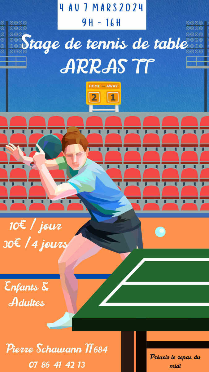 Stage du lundi 4 mars au jeudi 7 mars de 9h à 16h a la salle Vandamme, organisé par Pierre, numéro 684 français !